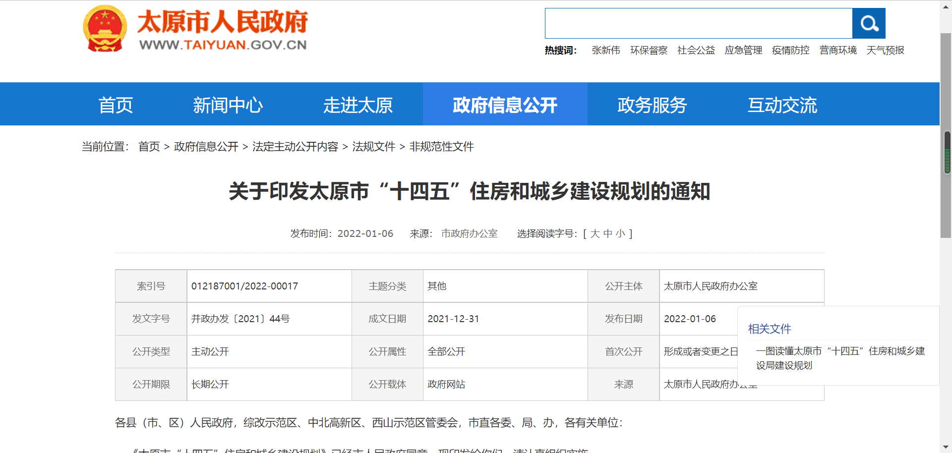 點擊藍字關注我們泰華遠大做最精心的裝配式建筑企業,成就精彩員工夢想。太原市人民政府關于印發(fā)“十四五”住房和城鄉建設規(guī)劃的通知并政辦發(fā)〔2021〕44號各縣(市、區)人民政府,綜改示范區、中北高新區、西山示范